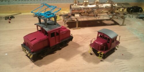 製作中の小型車輌たちですが,凸型の2両の塗装作業が一応終了しました。 元小田急の凸電とKATO8t機です。いずれもワールド工芸製です。 車体カラーはどこぞの炭鉱鉄道のカラーリングを参考にしました。パンタの色がなんともいえませんね。 電機は背の…