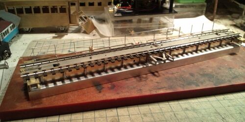 珊瑚模型店製の築港タイプ転車台の製作 その15です 施錠装置が付いた桁に側板を仮止めしてみました。 側板は問題なく取り付けられました。といっても両面テープで貼り付けているだけですが。実際の取り付け方法は半田付けにするかねじ止めにするか検討中で…
