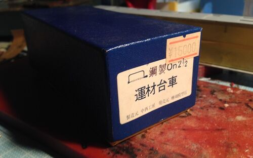 春の運転会が終わり,保線車も一段落したので何か気分転換になる工作をしようとストックヤードからこれを出してきました。 Oナローの運材台車です。値段は結構高いです。これ一箱で昔乗工社が出していた運材台車10両入りが3箱買えます。 パーツはほぼ全て…