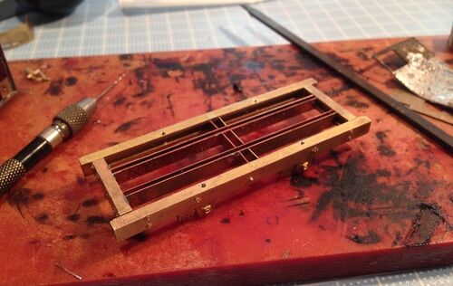 カルーイ気持ちで組み始めたら意外とカラくてちょっと手間取っていた珊瑚の木曽貴賓客車が組み上がりました。 下回りは中間部の台枠と端梁を半田で付けて両脇の梁は螺子止めです。このように平たい板の上において4つの軸受けにガタが出ないように注意しなが…